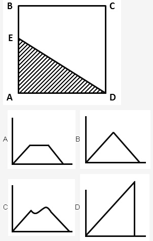 70如下图,正方形ABCD边长为10厘米,一只小蚂蚁E从A点出发匀速移动,沿边AB,BC,CD前往D点。问哪个图形能反映三角形AED的面积与时间的关系?