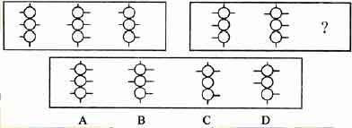 一、图形推理:共10题,每道题包含两套图形和可供选择的4个图形。这两套图形具有某种相似性,也存在某种差异。要求你从四个选项中选择你认为最适合取代问号的一个。正确的答案应不仅使两套图形表现出最大的相似性,而且使第二套图形也表现出自己的特征。