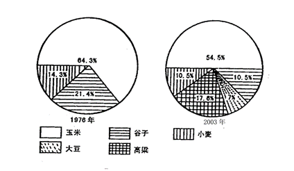 118.1976年相比,该地2003年小麦构成比重下降(D)。