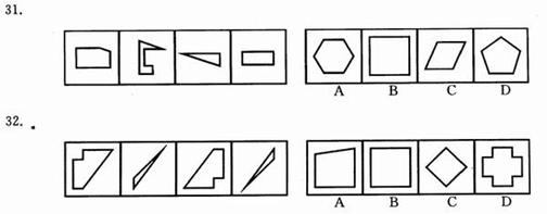 (一)右边的四个图形中,只有一个是由左边的四个图形拼合而成的,请选出来。