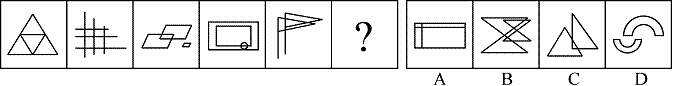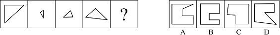(一)每道题在左边的题干中给出一套图形,其中包括五个图,这五个图呈现一定的规律性。在右边给出一套图形,其中有四个图,从中选出唯一的一项作为保持左边五个图规律性的第六个图。