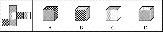 (三)左边给定的是纸盒外表面的展开图,右边哪一项能由它折叠而成?请把它找出来。
