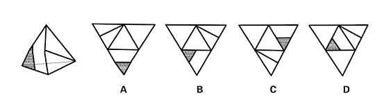 92.右边四个图形中,只有一个是左侧图形的展开的展开图,请把它找出来。