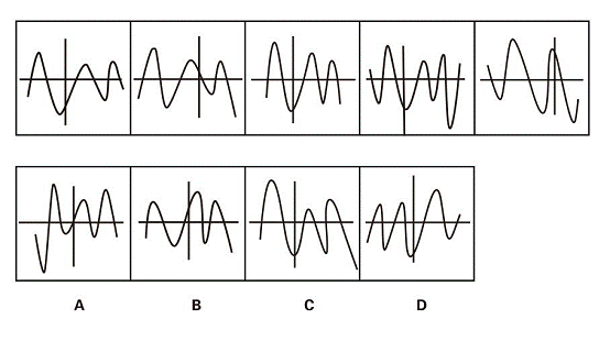 86.在题干中给出一套图形,其中有五个图,这五个图呈现一定的规律性。在给出的另一套图形中,有四个图,从中选出唯一的一项作为保持左边五个图规律性的第六个图。
