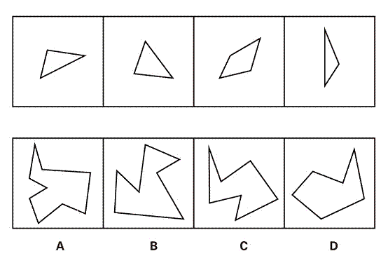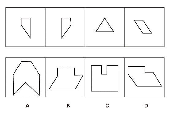 91.选项的四个图形中,只有一个是由题干中的四个图形拼合(只能上、下、左、右平移)而成的,请把它找出来。