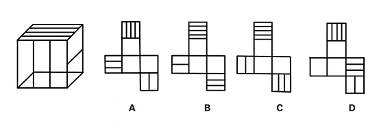 94.右边四个图形中,只有一个是左侧图形的展开的展开图,请把它找出来。