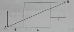68.下图是由三个边长分别为4、6、χ的正方形所组成的图形,直线AB将它分成面积相等的两部分,则χ的值是( )