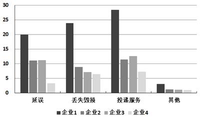 123、将4家企业按2015年1月每百万件快递业务丢失损毁的有效申诉量按从高到低排序,正确的是: