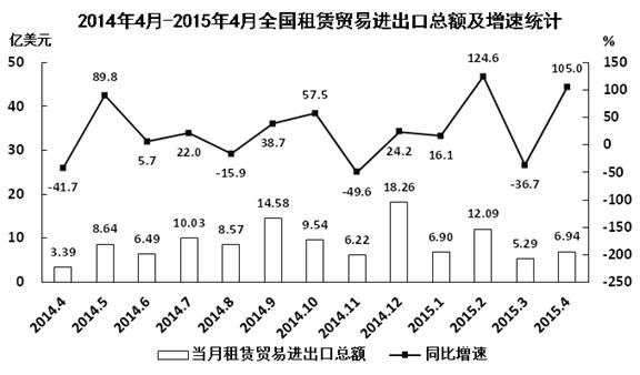 A.2015年4月全国租赁贸易进出口额比2013年4月翻了一番