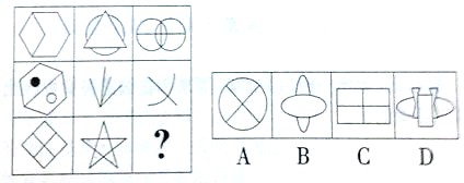 一、图形推理。从每题所给的四个选项中,选择最合适的一个填入问号处,使之呈现一定的规律性。