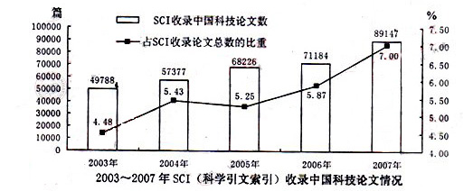 82.2003~2007年,SCI平均每年约收录多少篇中国科技论文?