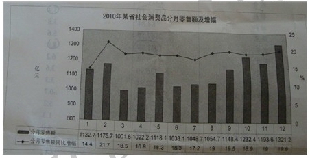 A.2010年该省社会消费品分月零售额增幅最大的是12月份