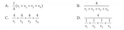 45、四名运动员参加4×100米接力,他们100米速度分别为V1V2V3V4。不考虑其他影响因素,他们跑400米全程的平均速度为: