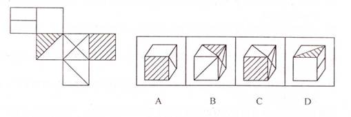 56.左边给定的是纸盒的外表面,下面哪一项能由它折叠而成