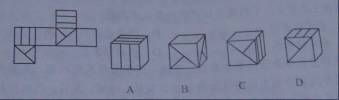 73.左边给定的是纸盒的外表面,下面哪一项不能由它折叠而成?