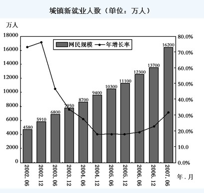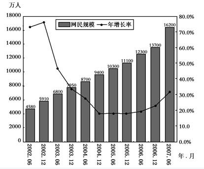 126.2007年6月与2006年同期相比,网民数增加了: