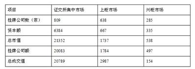 台湾资本市场第三层次是兴柜市场。在准入门槛方面,兴柜市场没有营业利润、资本额、设立年限的限制,只须符合已经申报上市或上柜辅导且有两家以上证券商书面推荐。至2012年底,兴柜公司有285家,资本额0.335兆新台币,总市值0.538兆新台币。