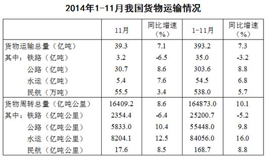 120.关于2014年1~11月我国货物运输状况,能够从上述资料中推出的是( )