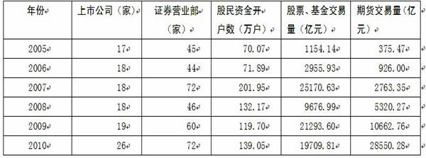 某市证券行业主要经济数据