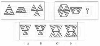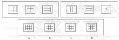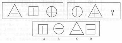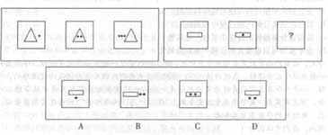 (一)每道题包含两套图形和可供选择的4个图形。这两套图形具有某种相似性,也存在某种差异。要求你从四个选项中选择你认为最适合的一个来取代问号。正确的答案应不仅使两套图形表现出最大的相似性,而且使第二套图形也表现出自己的特征。