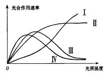 98.右图为四种植物(Ⅰ、Ⅱ、Ⅲ、Ⅳ)在不同光照强度下光合作用速率的曲线,其中最适于在荫蔽条件下生长的植物是