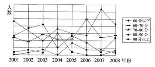 2001年—2008年某班级50名学生期末考试成绩统计图