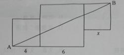 68.下图是由三个边长分别为4、6、χ的正方形所组成的图形,直线AB将它分成面积相等的两部分,则χ的值是( )