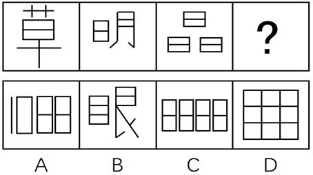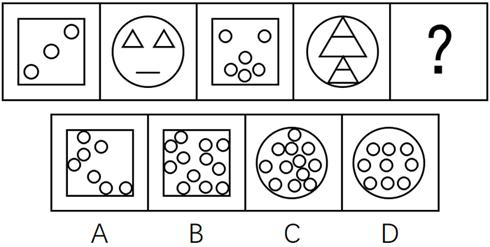 74、从所给的四个选项中,选择最合适的一个填入问号处,使之呈现一定规律。