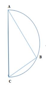 68.如右图所示,甲和乙在面积为54π的半圆形游泳池内游泳,他们分别从位置A和B同时出发,沿直线同时游到位置C。若甲的速度为乙的2倍,则原来甲、乙两人相距:
