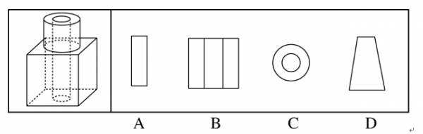 74.如图所示,立方体上叠加圆柱体在打通一个圆柱孔,然后从任意面剖开,下面哪一项不可能是该立体的横截面