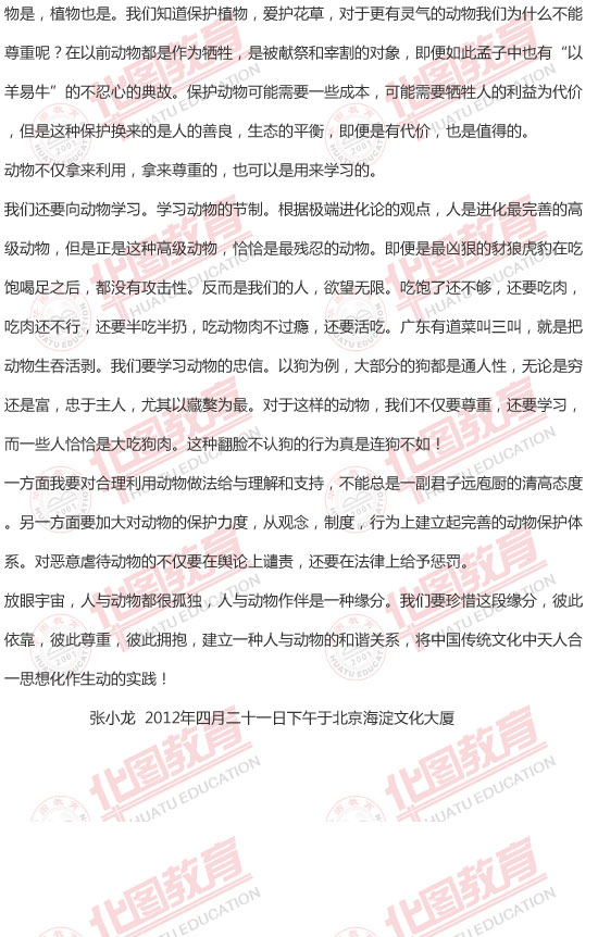 四、结合“给定资料”,自拟题目写一篇文章,谈谈你对“人与动物”关系的体会与思考。(40分)