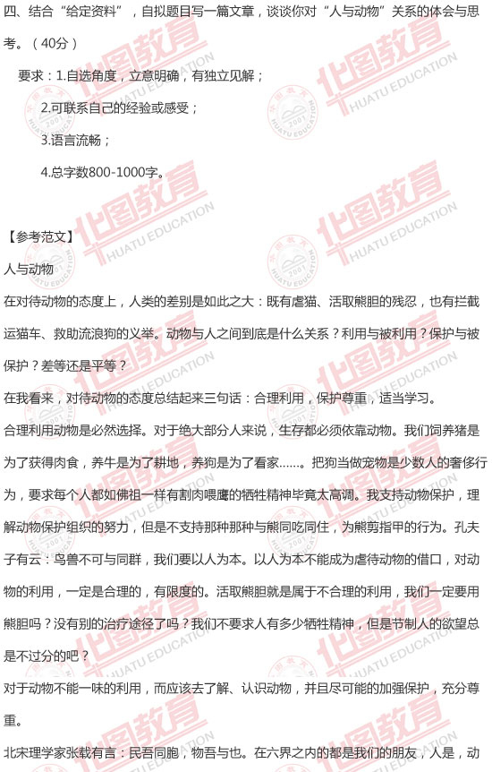 四、结合“给定资料”,自拟题目写一篇文章,谈谈你对“人与动物”关系的体会与思考。(40分)