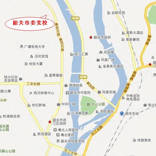 2、韶关站(高铁)乘22路公交车至沙湖路口站换乘25路公交车至市委党校站,全程约50分钟;或乘22路公交车至西河汽车站下车往北步行至妇幼保健院(530米)换乘8路公交车至市委党校站,全程约60分钟。