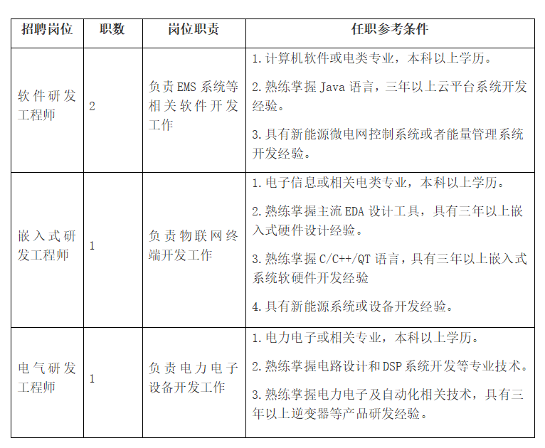 本单位拟公开招聘员工4名,派遣至浙江大学生物医学工程与仪器科学学院数字技术及仪器研究所新能源课题组从事科研和产业化开发工作。招聘坚持公开、公平、竞争、择优的原则,凡符合招聘岗位要求且有意向者,请将个人简历、毕业证书和学位证书扫描件以及其它证明本人能力、水平的相关资料发至邮箱:请【点击下方“立即投递/投递简历”,即刻进行职位报名】。邮件主题注明:“应聘”。经资格审核后,再进行面试考核,择优录取。