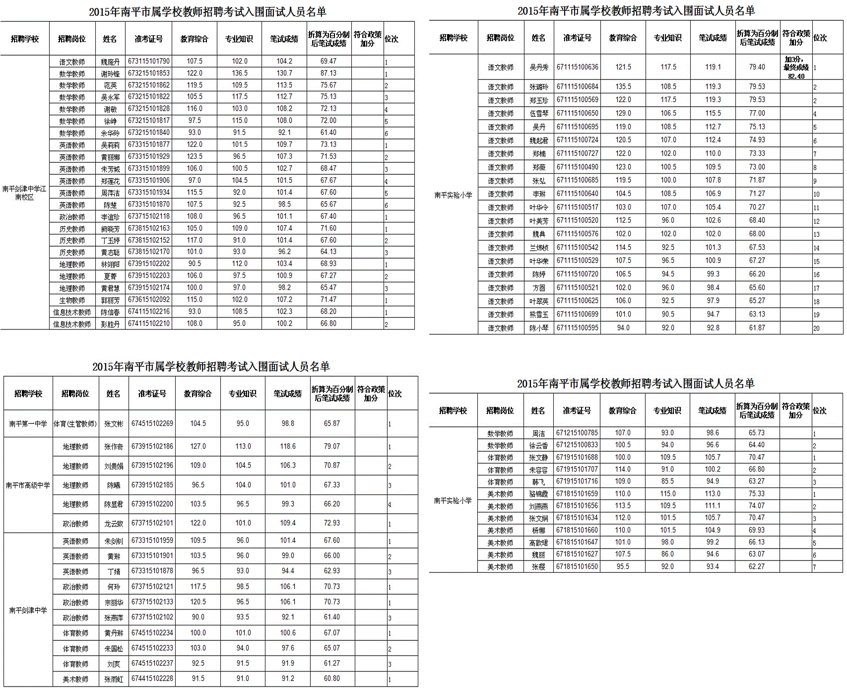 原标题:南平市2015年市属中小学新任教师公开招聘面试公告