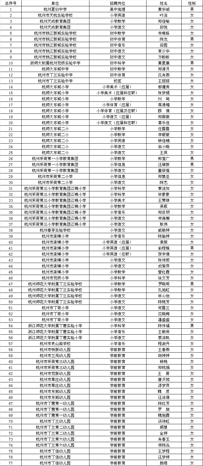 6月江干区教育局招聘教职工进入体检名单