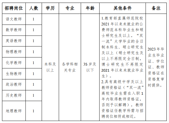 云南省保山第一中学2022年10月公开招聘教师9个岗位共9人,具体岗位如下:(请点击链接查看岗位表详情)