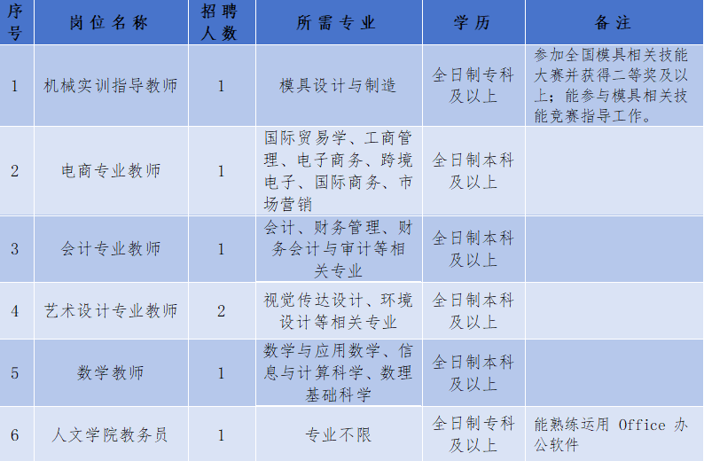 根据学院发展需要,拟招聘编外教职工7名。招聘要求具体如下: