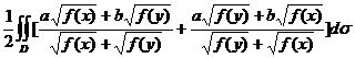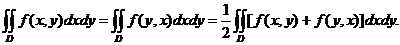 【评注】 被积函数含有抽象函数时,一般考虑用对称性分析. 特别,当具有轮换对称性(x,y互换,D保持不变)时,往往用如下方法: