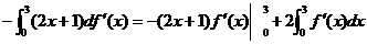 【评注】 本题f(x) 在两个端点的函数值及导数值通过几何图形给出,题型比较新颖,综合考查了导数的几何意义和定积分的计算. 另外,值得注意的是,当被积函数含有抽象函数的导数时,一般优先考虑用分部积分.