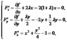 20……【分析】 根据全微分和初始条件可先确定f(x,y)的表达式. 而f(x,y)在椭圆域上的最大值和最小值, 可能在区域的内部达到,也可能在区域的边界上达到,且在边界上的最值又转化为求条件极值.