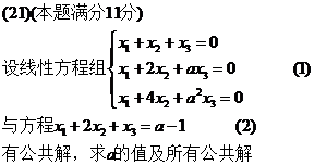 因为方程组(1)、(2)有公共解,即由方程组(1)、(2)组成的方程组