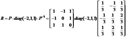 于是根据B与A的关系可以知道B也是实对称矩阵,于是属于不同的特征值的特征向量正交,设B的属于1的特征向量为,所以有方程如下: