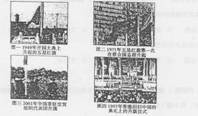 1949年10月1日,毛泽东主席在天安门城楼升起了新中国的第一面五星红旗。从此,五星红旗成为中华人民共和国的标志,成为国家及民族精神的象征。在中国共产党的英明领导下,在全国各族人民的共同努力下,中华人民共和国走过了60年的辉煌历程。请指出下列图片中所反映的升旗仪式各反映了什么历史事件?在中国发展历和中有何历史意义?