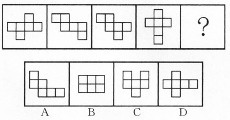 32. 从给出的选项中,选择最合适的一个填入问号处,使之呈现一定的规律性: