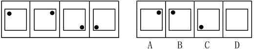 在例题2中,黑点在正方形中顺时针移动。在第5个图形中,应该正好移动到左上角。因此,正确答案是B。
