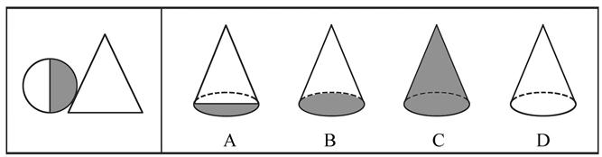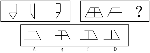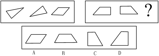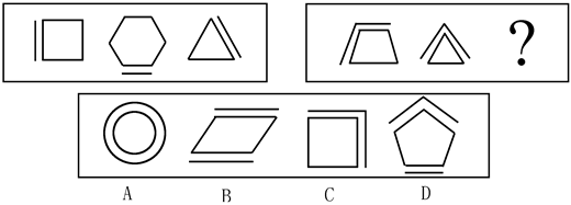 解答:正确答案为C。因为在第一套图形中多边形均有一条边双线,在第二套图形中均有二条相邻的边双线。