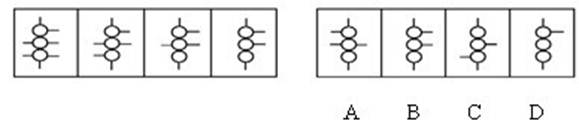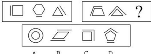 解答:正确答案为C。因为在第一套图形中多边形均有一条边双线,在第二套图形中均有二条相邻的边双线。