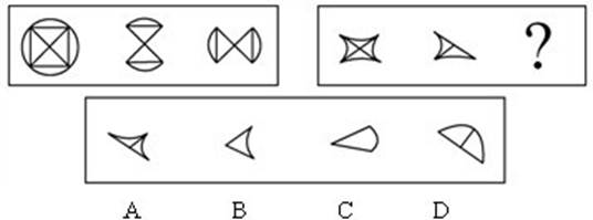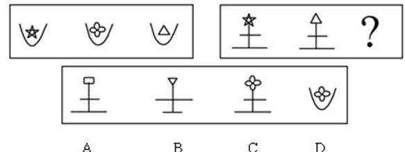 2.每道题包含两套图形和可供选择的4个图形。这两套图形具有某种相似性,也存在某种差异。要求你从四个选项中选择你认为最适合取代问号的一个。正确的答案应不仅使两套图形表现出最大的相似性,而且使第二套图形也表现出自己的特征。