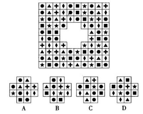 三、图形推理。请认真观察每组图形,理解其中含义,判断出它的逻辑和顺序,并在四个选项中选择你认为最合适的答案。